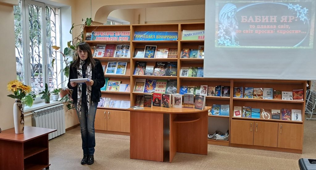 29 вересня в Бібліотека-філія 12 ВМ ЦБС відбулася година пам’яті “Бабин Яр – символ вічної скорботи” присвячений вшануванню пам’яті жертв трагедії Бабиного Яру – одного з найжахливіших злочинів нацистського режиму під час Другої світової війни. Метою заходу було не лише згадати невинно вбитих у Бабиному Яру, а й донести до присутніх важливість збереження історичної пам’яті. Під час Другої світової війни було знищено понад 100 тисяч людей, більшість із яких – євреї.