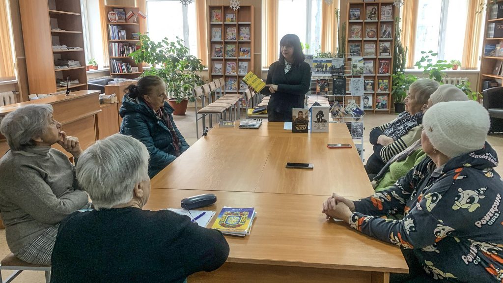 Під час інформаційної години говорили про важливість пам’яті, правди та підтримки одне одного у скрутні часи. Особливе місце мав бібліографічний огляд літератури “Книги сучасної війни”, який допоміг читачам краще ознайомитись з книгами воєнної тематики та відкрити для себе нові імена й історії. 📚 А зворушливою частиною зустрічі стали власні вірші про війну Тамари Філіної – щирі, емоційні, сповнені болю, віри та надії.