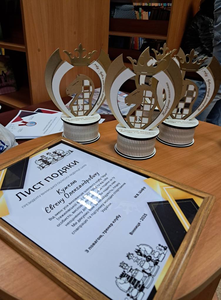 11 жовтня у шахово-шашковому клубі “Мрія”, що діє при бібліотеці-філії № 7, відбулися 🏆♟️🏅другі дитячі змагання з гри у шахи пам’яті майстра спорту України Віктора Стронського – першого тренера клубу. Змагання підтримали голова Вінницької обласної федерації шахів Євген Кужель і його заступник Володимир Грибанов. На старт вийшли 47 юних спортсменів – від дошкільників до підлітків. Вони представляли не лише господарів шахового поля – клуб “Мрія” -, а й клуби “Романтик” (філія ДЮСШ №6), “Пішак” (Палац дітей та юнацтва) і “Оракул” (м. Тульчин). Загалом юні шахісти пройшли п’ять турів за швейцарською системою. Окремо влаштували два турніри – для початківців і досвідчених гравців. Серед новачків чемпіонами стали шестирічний Андрій Толчев і семирічна Віолетта Шафір, серед розрядників – дворазова чемпіонка України серед дівчат Анастасія Чепка (всі – Вінниця) і Максим Демченко (м. Тульчин). Загалом на турнірі у різних категоріях було розіграно п’ять кубків, 24 медалі, а всі юні гравці, завдячуючи меценатам, отримали грамоту за участь і солодкі призи. Крім того, на змаганнях зібрали більше п’яти тисяч гривень для однієї з бригад, де служить батько вихованця клубу “Мрія”.