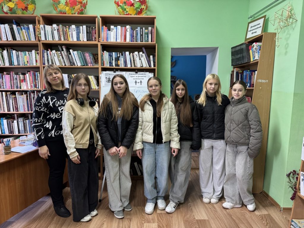 30 жовтня працівники бібліотеки-філї № 4 провели інформаційну годину “Гендерна рівність – крок до розвитку суспільства”. Останніми роками в українському суспільстві часто говорять про гендерну рівність. Часто цей аспект може здаватись, що гендерна рівність — це лише про посилення прав жінок. Насправді, рівноправна участь жінок та чоловіків у всіх сферах життя позитивно впливає на всіх у суспільстві. Гендерна рівність – це принцип, згідно з яким люди будь-якої статі мають рівні права та можливості в усіх сферах життя, вона є невіддільним інструментом побудови адекватного, толерантного та безпечного суспільства. На заході діти дізнались чим відрізняється гендер та стать, що є фактом, а що стереотипом у твердженнях про чоловіків та жінок, про хлопців та дівчат, а також пройшли цікаві тести та виконали вправи.