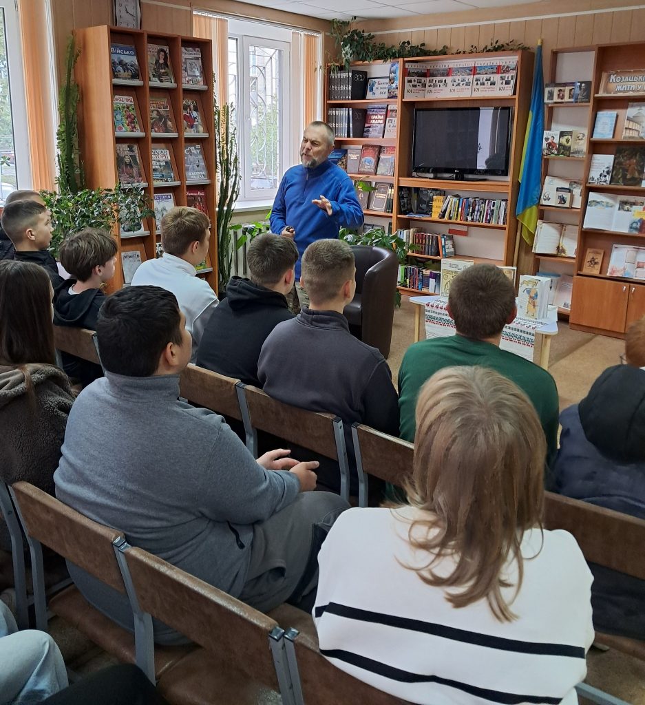1 жовтня з нагоди Дня українського козацтва праціники бібліотеки-філії № 7 провели історичну годину “Козацькій славі жити у віках”. На захід, присвячений вшануванню героїчної спадщини українського козацтва – епохи, що стала символом мужності, волелюбності та державотворчої сили нашого народу, були запрошені учні 9-В класу КЗ “Вінницький ліцей № 27”. Олександр Савельєв – вчитель історії, працівник Центру освітніх технологій, автор ютуб каналу “Історичні студії з Олександром Савельєвим” розповів присутнім, що козаки – це не лише сторінка історії, а символ свободи, гідності та любові до рідної землі. апорозька Січ була унікальним явищем свого часу – демократичною військовою республікою, де панували рівність, братерство і честь. Саме там народжувалися традиції, що сформували характер української нації. Олександр Миколайович наголосив, що сьогодні українське військо гідно продовжує славні традиції козацької звитяги. Наші захисники, як і наші предки, боронять нашу землю від ворога, проявляючи відвагу і стійкісь. Це – живий доказ того, що козацький дух не згас, а живе в серцях сучасних воїнів. Козацька слава – це фундамент нашої національної гідності. Вона єднає покоління, надихає на боротьбу та утверджує віру в перемогу.