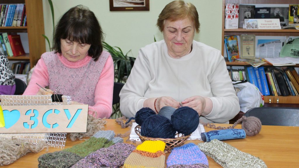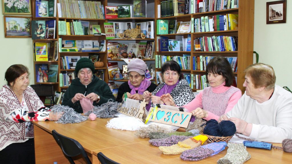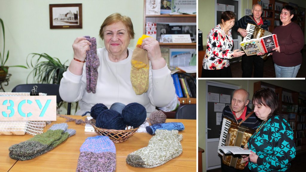 У нашій бібліотеці-філії проєкт “Музичні посиденьки” – це завжди про єдність. Сьогодні вкотре зібрались учасники колективу. Поки розучували мелодійні “Біла акація” та “Ой черешня, черешенька…”, руки не знали спочинку. Наші воїни на передовій мають відчувати, що про них дбають. Тому “кікімори” плетуться, шкарпетки в’яжуться, а молитва в пісні летить до неба.