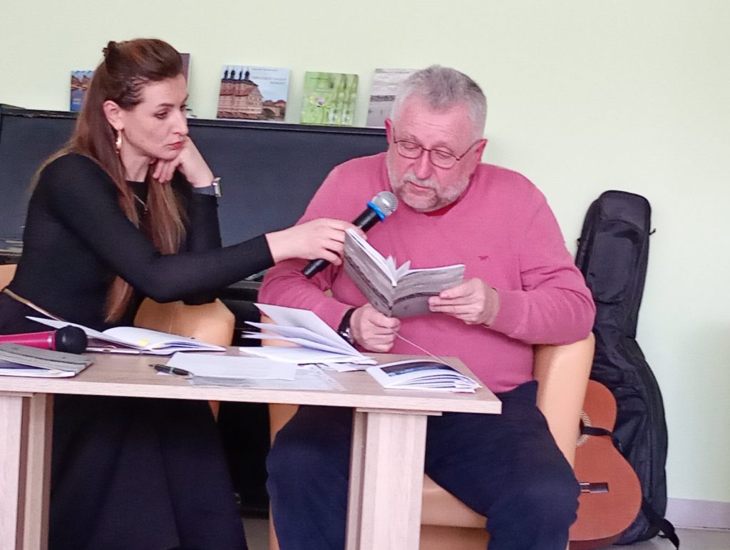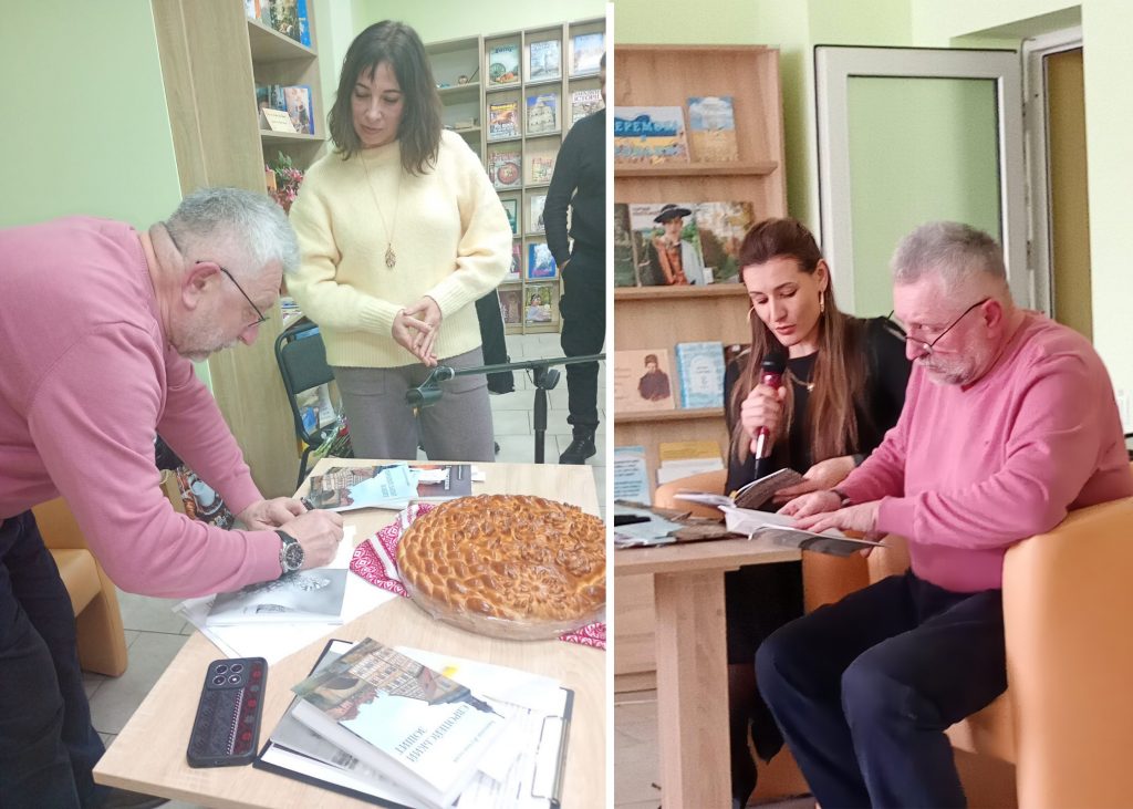 Презентації книг про війну в Україні виконують роль не лише літературних заходів, а й потужного інструменту культурної та інформаційної боротьби. Сьогодні такі книги презентував Анатолій Петрович Жучинський – вінницький поет та заслужений журналіст України. У своїх поетичних творах він звертається до тем, “обпалених війною”, розкриваючи питання історичної пам’яті та національної свідомості. Його літературний доробок вирізняється щирістю, громадянською позицією та відображенням культурного життя регіону. Творчість охоплює ліричні та громадянські вірші, часто присвячені воєнним подіям та історії. Основний акцент у творах робиться на патріотизмі, історичній пам’яті та актуальних соціальних питаннях. Анатолій Жучинський відомий як автор, який через слово виховує повагу до історичного минулого та культури України. На презентації звучали вірші Анатолія Петровича в авторському виконанні. Це не тільки книги про війну, але і лірика. Душевність та правдивість автора зачарувала присутніх. Підтвердженням цього були гучні оплески. Великою підтримкою для автора була сьогодні дружина Наталія Жучинська ! Вона зачитувала вірші, і коментувала історії їх написання. Колеги по роботі, друзі та родина щиро вітали автора з новонародженими книгами. Анатолій Петрович не тільки читав вірші, але і співав власні пісні. Пісні на вірші Анатолія Жучинського співала також Тетяна Скомаровська.