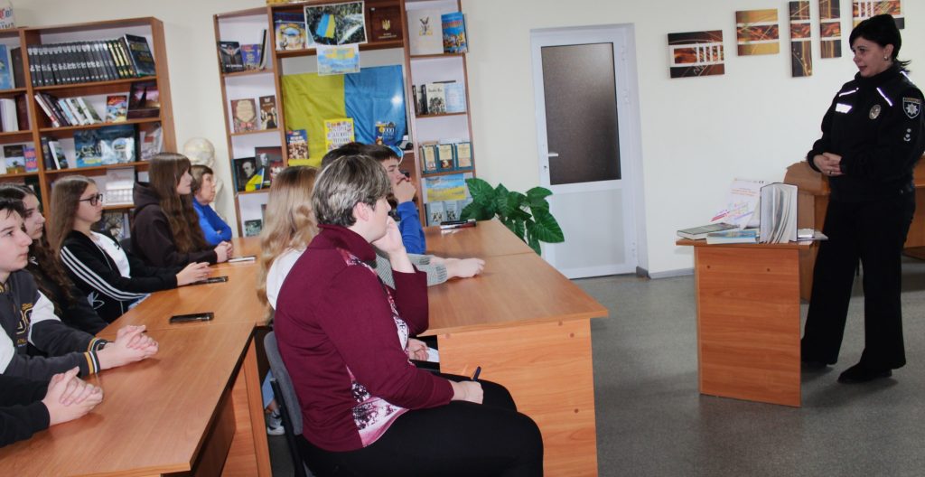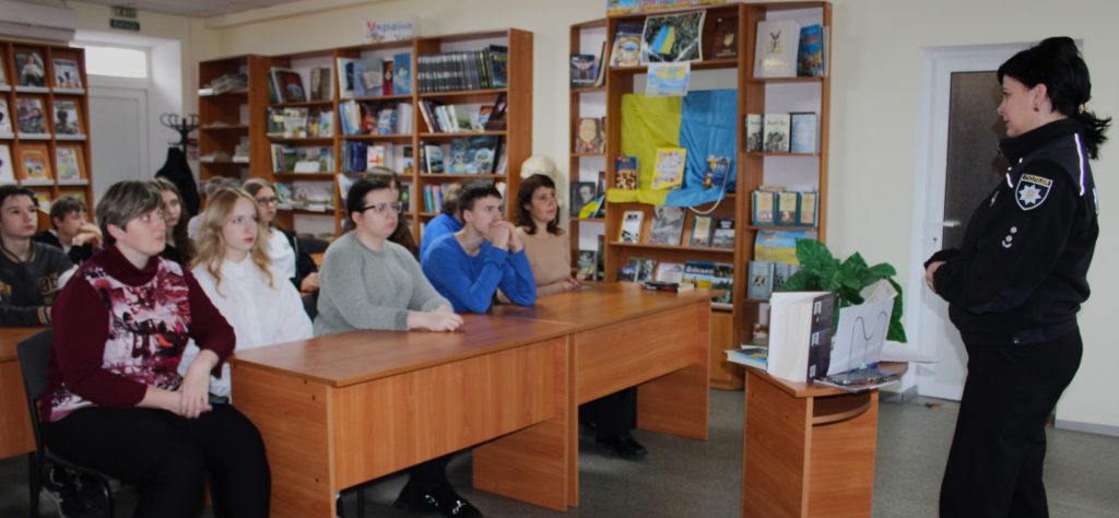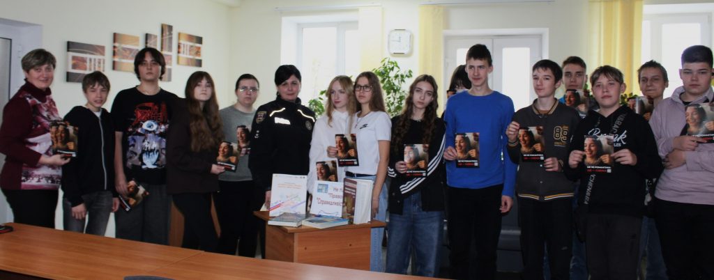 25 листопада працівники бібліотеки-філії № 1 підготували урок правових знань “Не стань живим товаром” (Протидія торгівля людьми). На зустріч було запрошено старшого оперуповноваженого в ОВС УМП ГУНП у Вінницькій області підполковника поліції Людмилу Клименко та учнів 9-В класу КЗ “Вінницький ліцей № 8” на чолі з викладачами Любов’ю Габрук Ларисою Канавець, Тетяною Левченко. Торгівля людьми є одним із найсерйозніших злочинів проти людини, який має як економічні, так і соціальні, педагогічні, психологічні причини. Повномасштабна війна, збільшення людей, які були змушені покинути свої домівки, гуманітарна та безпекова кризи – фактори, які сприяють поширенню злочину торгівлі людьми. Під час зустрічі школярі значно підвищили рівень поінформованості щодо проблеми торгівлі людьми, дізнались які форми її існують, і як вона проявляється в сучасному світі. Людмила Клименко розповіла учням про специфіку роботи свого відділу та навела приклади торгівлі людьми у Вінницькій області, застерегла молодь від необдуманих вчинків, щоб не стати жертвою насильства чи обману, та підказала як діяти в разі виникнення небезпечної ситуації, роздала юнацтву інформаційні матеріали та відповіла на запитання присутніх.