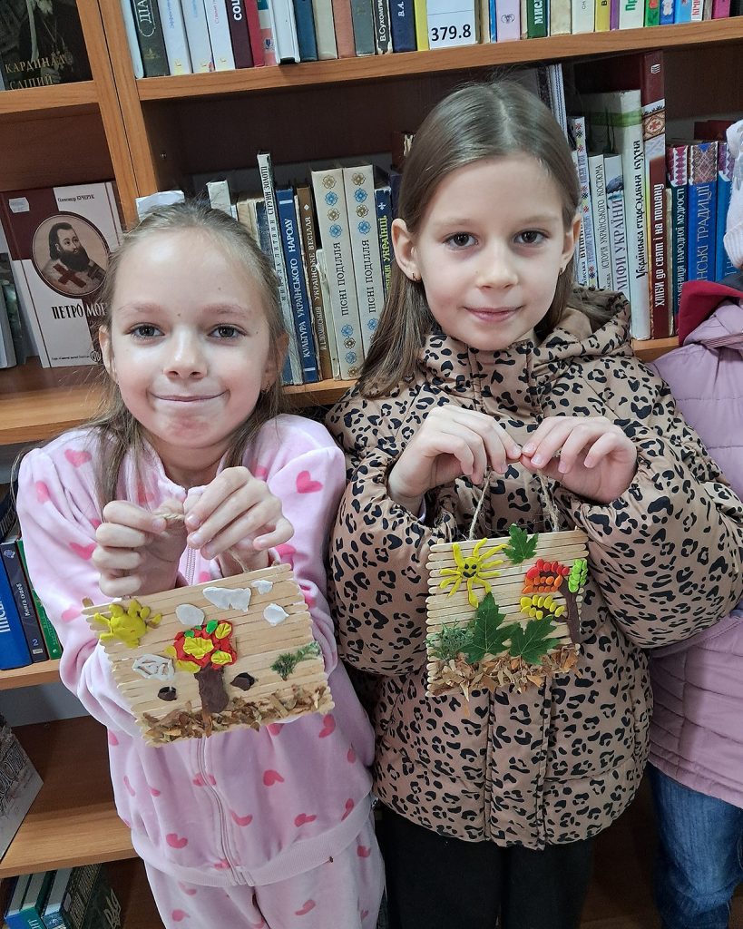 12 жовтня працівники бібліотеки-філії № 2 провели для гуртківців “Первоцвітів” майстер-клас з виготовляли “осіннього пейзажу” з пластиліну. З цього матеріалу можна не тільки ліпити об’ємні фігури. Також це прекрасний матеріал для створення оригінальних картин. Саме такі картини на осінню тематику створювали з пластиліну маленькі гуртківці.