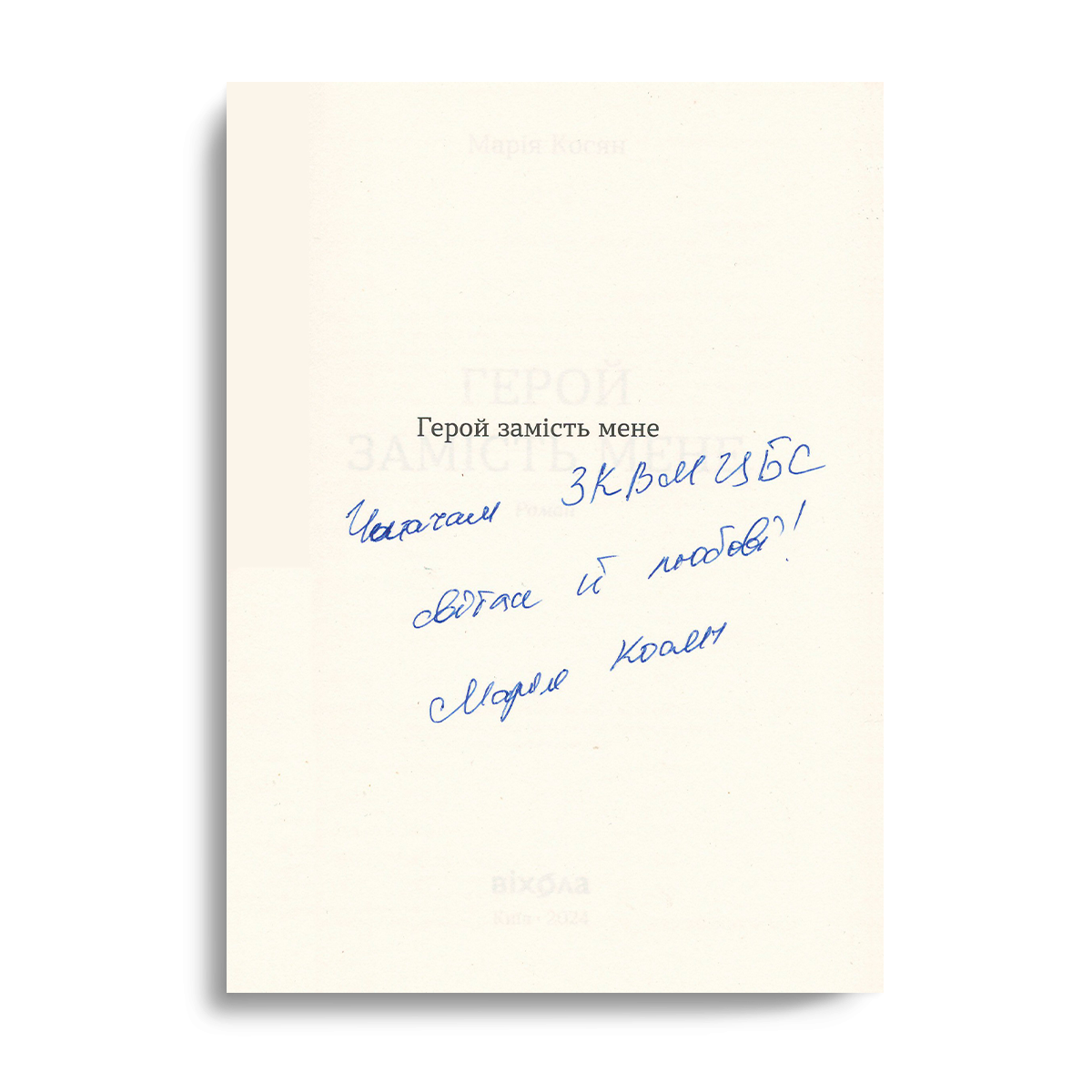 Герой замість мене : роман / М. Косян ; [літ. ред. Г. Сапожнікова ; дизайнер обкл. К. Мальцева ; голов. ред. О. П. Дубчак]. – Київ : Віхола, 2024. – 592, [8] с. – (Худліт. Проза). – ISBN 978-617-8517-22-9 (в м’як. обкл.)