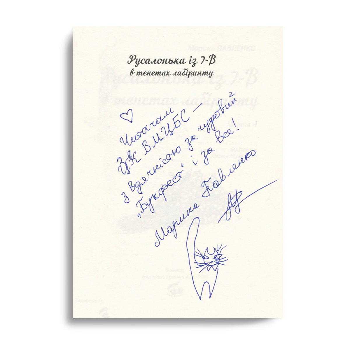 Русалонька із 7-В в тенетах лабіринту : [повість-казка : для серед.шк. віку] / М. С. Павленко ; мал. О. Музиченко ; [дизайн та верстка Г. Вербицької ; ред. І. Подольська]. – Передрук (вид. 3-тє, випр. і доповн.). – Вінниця : Кузьмін А. В. ; Вінниця : Вишенька, 2024. – 373, [11] с. : іл. – (Русалонька із 7-В ; кн. 4). – ISBN 978-617-95131-7-6 (в паліт.)