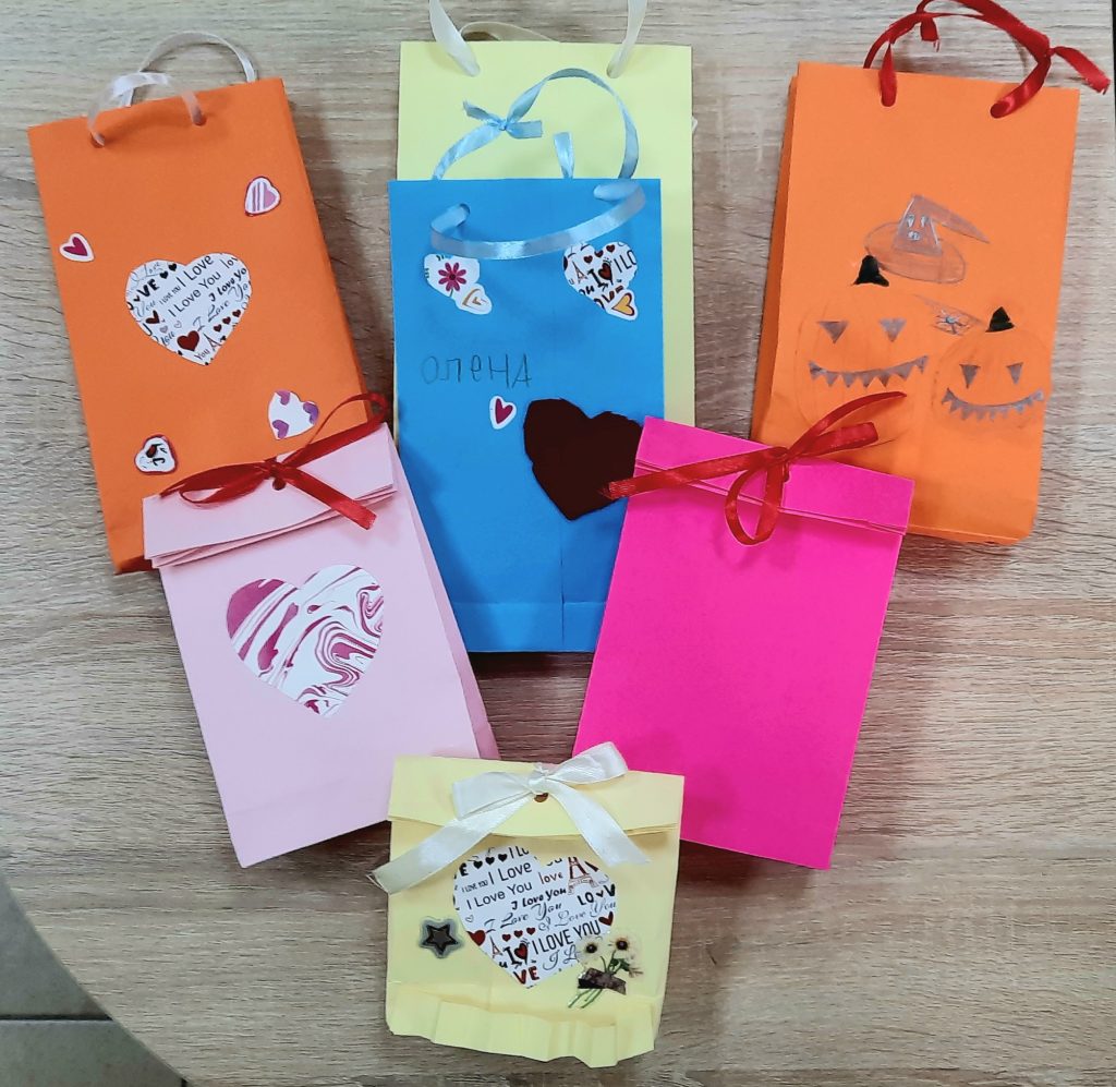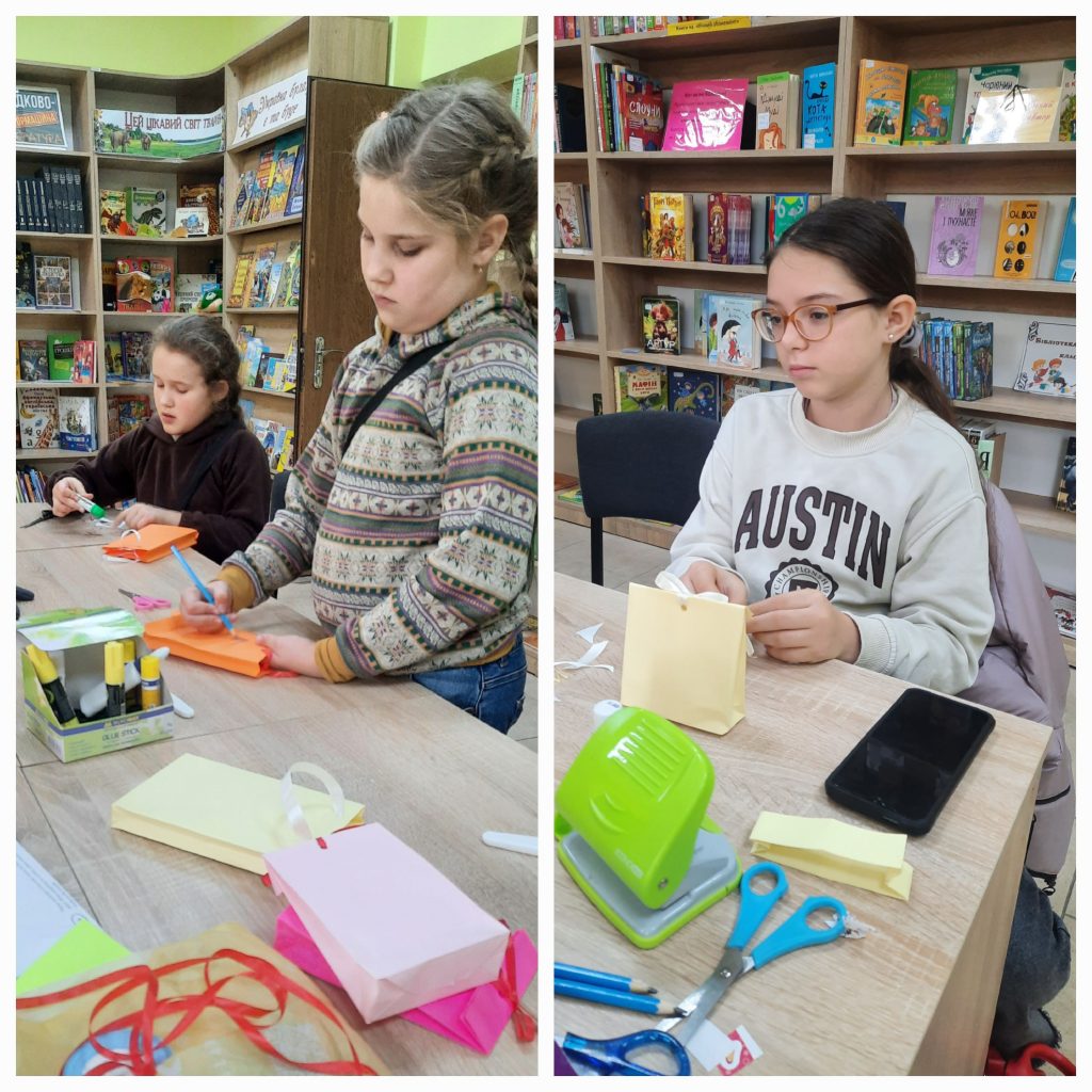 2 листопада на черговому занятті гуртка “Яскраве дитинство” бібліотекарі провели майстер-клас із виготовлення подарункових пакетиків, які ідеально підійдуть для прикрас, аксесуарів та інших невеличких подарунків. Власноруч виготовлені пакети допоможуть у створенні святкової атмосфери, збереження інтриги та виявлення уваги до людини, якій презентується подарунок.. Подарункові пакети надають подарунку завершеного вигляду, роблять його сюрпризом і підвищують емоційну цінність вручення. Діти дуже старались, тому результат підтвердив очікування. Кожен пакетик – яскравий, неповторний та оригінальний.