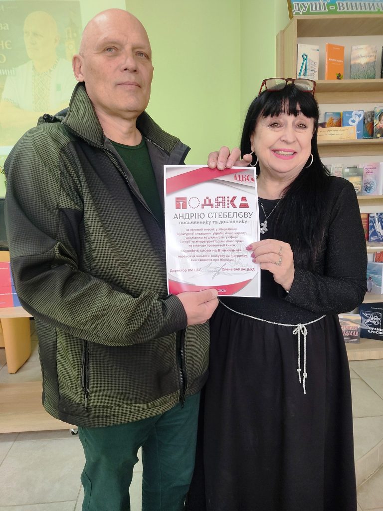 23 квітня в бібліотеці-філії №13 у рамках проєкту «Читай Вінницю» та знайомства читачів із книгами-переможцями міського «Конкурсу на підтримку книговидання про Вінницю» 2025 року відбулася презентація збірки нарисів про літературний процес на теренах сучасної Вінниччини від давніх давен до сьогодні письменника Андрія Стебелєва – «Художнє слово на Вінниччині». Автор розповів про те, що головні герої цієї книги – вінницькі літератори! Також присутні були проінформовані, про те, як збиралися матеріали та хто потрапив на сторінки часопису. Присутні отримали майстер-клас від автора. Андрій Стєбєлєв поділився практичними порадами та професійними секретами написання творів, які «чіпляють». Приємним було і те, що був вільний мікрофон, до якого долучилися талановиті гості заходу. Такі заходи є унікальною можливістю не лише отримати корисні знання, а й опинитися в колі однодумців.