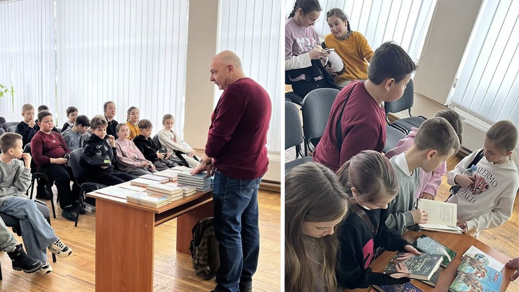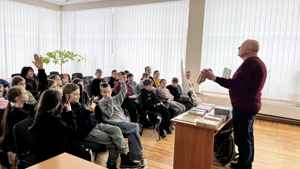 18 лютого у Центральній бібліотеці для дітей та юнацтва було по-справжньому гамірно й цікаво – до нас завітали учні 4 класу КЗ “Вінницький ліцей № 18” на зустріч із письменником Андрієм Кузьміним. Пан Андрій не просто пише книжки — він уже багато років допомагає їм з’являтися на світ: заснував видавництво “Вишенька”, підтримує літературні проєкти та щиро дружить із дитячою аудиторією. Тож розмова вийшла жива, невимушена і дуже справжня. Діти з цікавістю слухали про те, як народжуються історії, як створюється книга “Так не буває, або Оце так канікули”, написана разом із Валентиною Захабурою, ставили безліч запитань і щиро ділилися своїми думками.