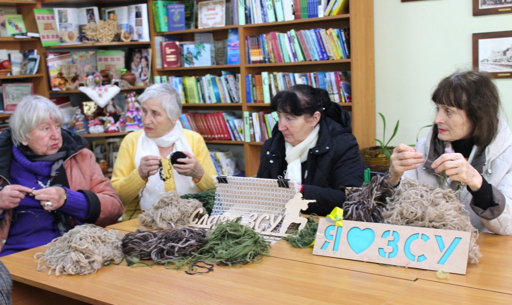 29 березня бібліотекарі організували чергову теплу та натхненну зустріч учасників проєкту «Музичні посиденьки» 🎶 Разом розучували нові пісні: 🌼 «Ромашка біла» 🇺🇦 «Україна моя…» 🎵 «Ой там, на товчку, на базарі». Як завжди, поєднали приємне з корисним – у дружній атмосфері плели маскувальні сітки «кікімори» для наших захисників та в’язали теплі шкарпетки 🧦