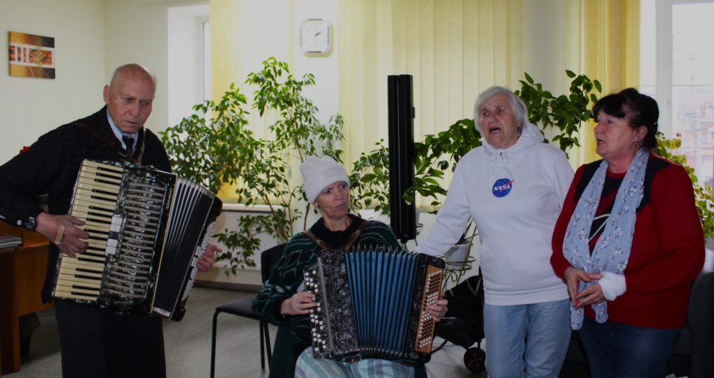 2 листопада у бібліотеці-філії № 1 відбулася чергова, як завжди, натхненна та творча зустріч учасників бібліотечного проєкту “Музичні посиденьки”. Захід об’єднав шанувальників української народної пісні – як місцевих вінничан, так і внутрішньо переміщених осіб, які знайшли у пісні та спільній справі розраду та підтримку. Головною метою зустрічі було формування концертної програми для майбутнього виступу гурту перед глядачами. Учасники активно поповнювали свій пісенний репертуар новими творами, паралельно виконуючи вже улюблені народні пісні, які створювали теплу та душевну атмосферу. Окрім творчості, колектив вкотре долучився до важливої волонтерської місії. Учасники проєкту спільними зусиллями плели маскувальні костюми, знані як легендарні “кікімори”, для потреб відважних українських воїнів.