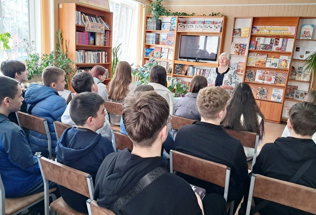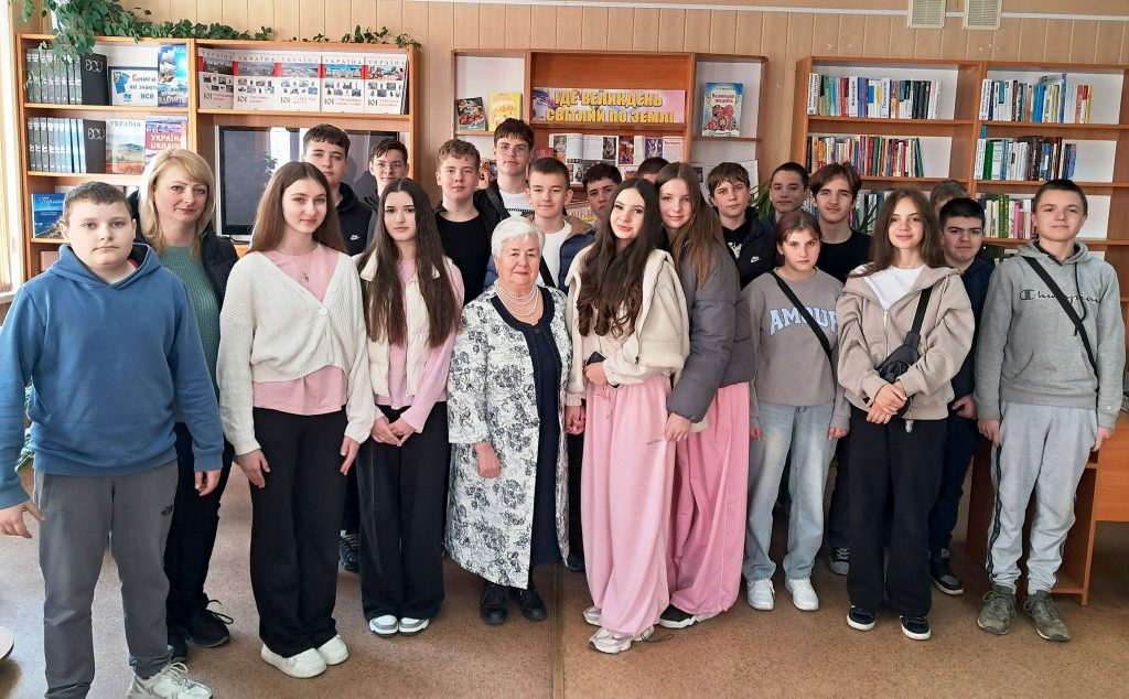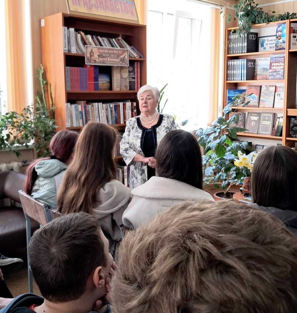 15 квітня стіни бібліотеки-філії №7 наповнились особливою атмосферою – на зустріч з вінницькою поетесою Тамарою Філіною завітали учні 8-Д класу КЗ “Вінницький ліцей №27”. Це була не просто творча зустріч, а щирий діалог поколінь. Слово пані Тамари здатне надихати і замислюватись про найважливіше: батьківщину, долю країни, родину, особистий вибір. У кожному рядку прочитаних віршів відчувалась непохитна віра в Україну і гордість за наш народ, а слова про родинні стосунки викликали щирі та теплі усмішки.