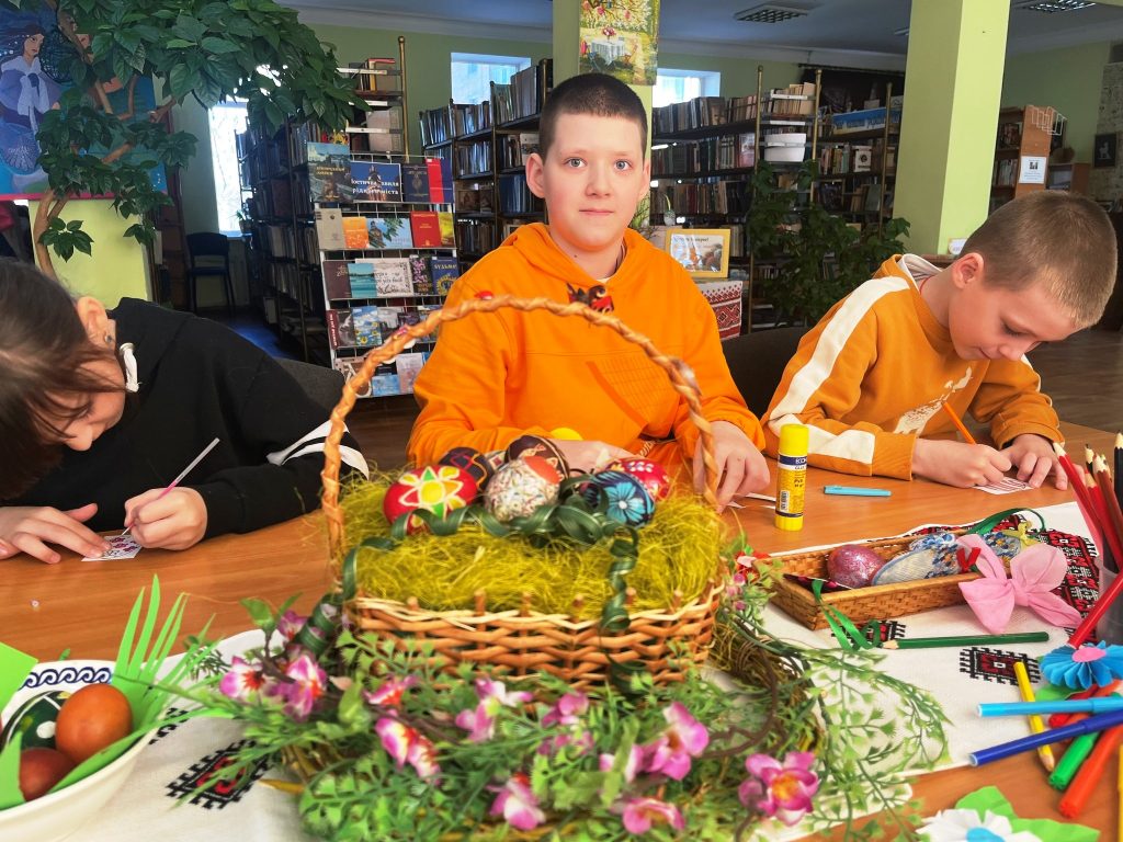 7 квітня працівники бібліотеки-філії № 8 провели для своїх молодших користувачів майстер-клас «Великодні фантазії». Діти мали чудову нагоду почути цікаву розповідь про походження Великодніх свят, про звичаї та традиції українського народу, значення символів та кольорів великодніх писанок. Всі із задоволенням розмальовували маленькі зображення писанок і формували з них одну велику писанку. А ще до цього радісного дня робили своїми руками оригінальні підставки під писанки, які стануть милим доповненням святкового інтер’єру. Захід пройшов в теплій атмосфері, що дарує особливий настрій в очікуванні свята.