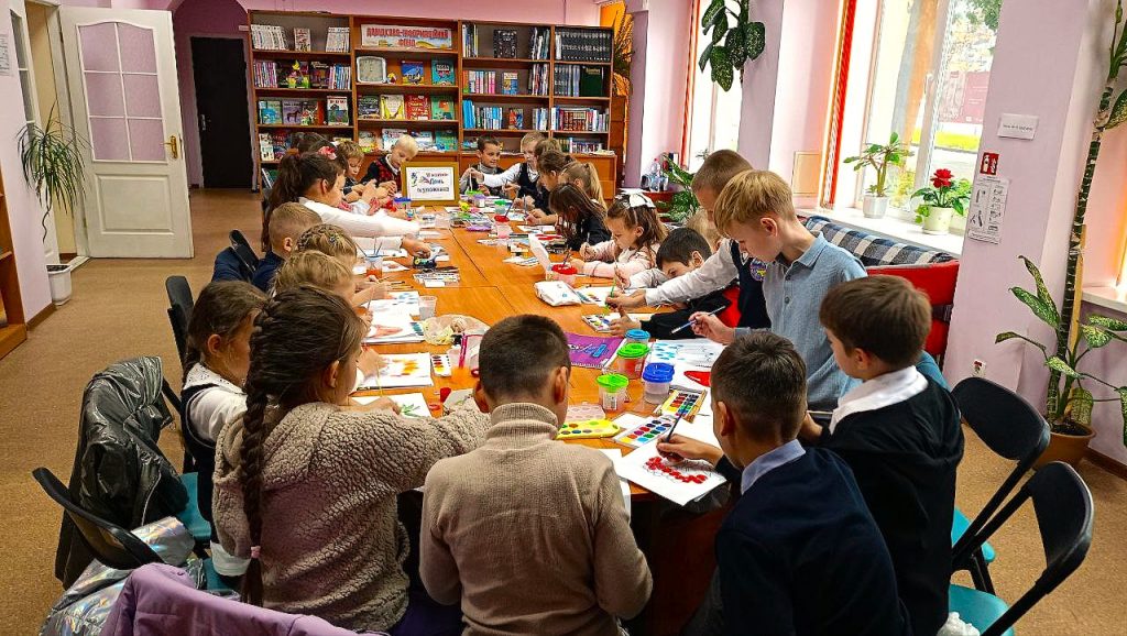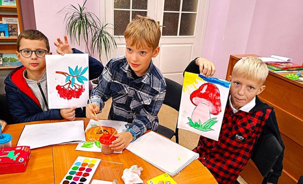 Щороку друга неділя жовтня – професійне свято всіх тих, хто впевнено тримає у своїх руках пензлі та олівець – День художника. Хтось творить красу словом, хтось – звуком, а хтось – кольорами. І саме напередодні цього дня, 6 жовтня у бібліотеці-філії № 12 відбулася арт-година «Веселковий пензлик», а долучились до неї учні 3-В КЗ «Вінницький ліцей № 29».Школярі мали можливість не тільки творити, а й приймати участь у грі «Жартівлива вікторина», відгадувати загадки. Роботи дітей заходу вийшли по-осінньому яскравими і неповторними.