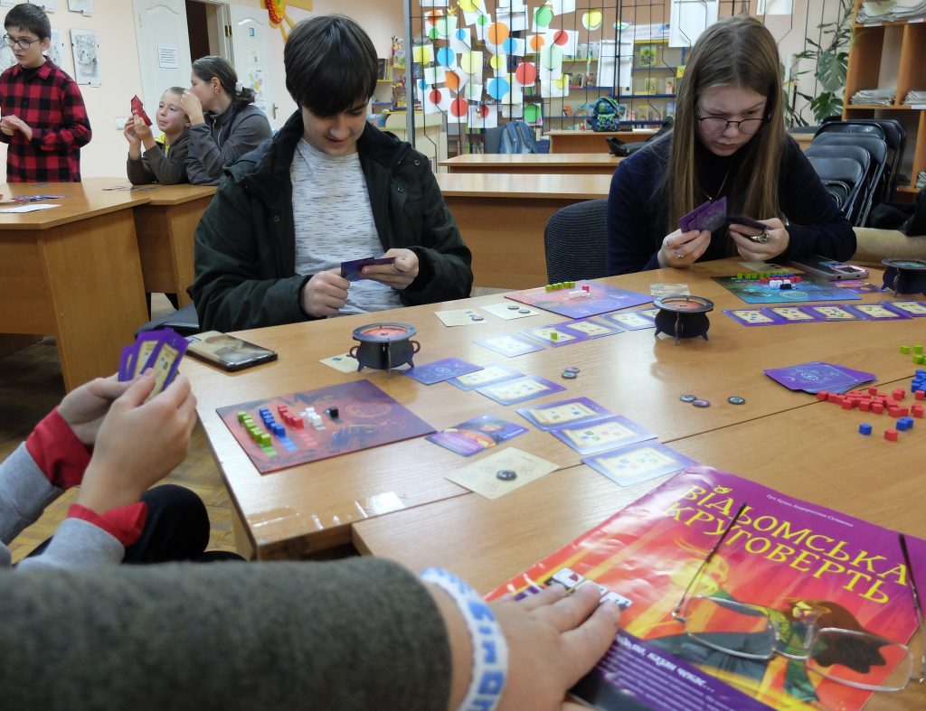 1 жовтня ігротека у бібліотеці-філії № 11 не змогла зупинитись і знову пройшла під знаком Геловіну! Після феєричного свята ми трохи “розкачувались”, але все ж влаштували справжне ігрове занурення. Головною подією стала довгоочікувана “Відьомська круговерть”! Попри трохи заплутані формулювання в правилах, наші підлітки проявили дивовижну наполегливість: самостійно розібралися з усіма нюансами і зіграли партію! Гра виявилась не складною, але дуже веселою і атмосферною! Крім того, пограли в багато інших захопливих ігор. Зустріч відбулася завдяки співпраці з благодійним проєктом ВінОК від ГО “ВільнОсвіта” в рамках програми “Варто, шлях відновлення” за підтримки Українського Ветеранського Фонду.
