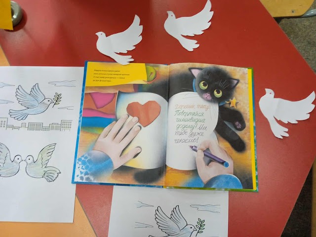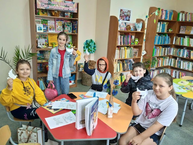 До свята бібліотекар філії № 6 з дітьми провела бібліомікс “Я за мирне дитинство”. Присутні брали активну участь у вікторині до Дня миру “Діти України за мир”, виготовляли голубів миру та емблеми, які символізують мир, малювали малюнки про мир та світле майбутнє.