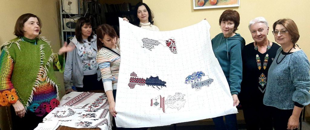 Жовтневе засідання клубу “Вишита сорочка”, що працює на теренах бібліотеки-філії № 13, ропочалося сьогодні з обміну досвідом по вишиванню сорочок та рушників. Цікаві поради, демонстрації виробів, спілкування наповнили залу для гуртків та клубів теплом. Також дівчата продовжили роботу над вишиванням карти Вінницької області. Робота ця рухається, цікаві узори з’являються на полотні різними кольорами.
