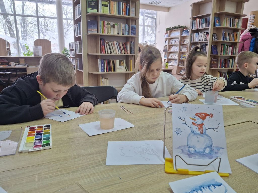 Сніг – це чудова нагода побавитися в сніжки, покататися на санчатах та зліпити сніговика. Саме з таким настроєм у Центральній міській бібліотеці імені І. Бевза відбувся майстер-клас з малювання для учнів приватного ліцею “Артинов” із дошкільним відділенням “Дельфін”, приурочений до Міжнародного дня сніговика. Художниця та бібліотекарка провела для дітей творче заняття з акварельного живопису. Під час майстер-класу учасники знайомилися з особливостями роботи з аквареллю, вчилися передавати настрій зими, холодні відтінки снігу та прості образи сніговиків. Діти експериментували з кольором, водою та фактурою, розвивали уяву й художнє бачення. Кожен учасник створив власну зимову роботу, а готові малюнки стали маленькими святковими історіями про зиму, радість і творчість. Такі заходи допомагають дітям не лише опановувати нові навички, а й сприймати бібліотеку як простір для натхнення, спілкування та самовираження.
